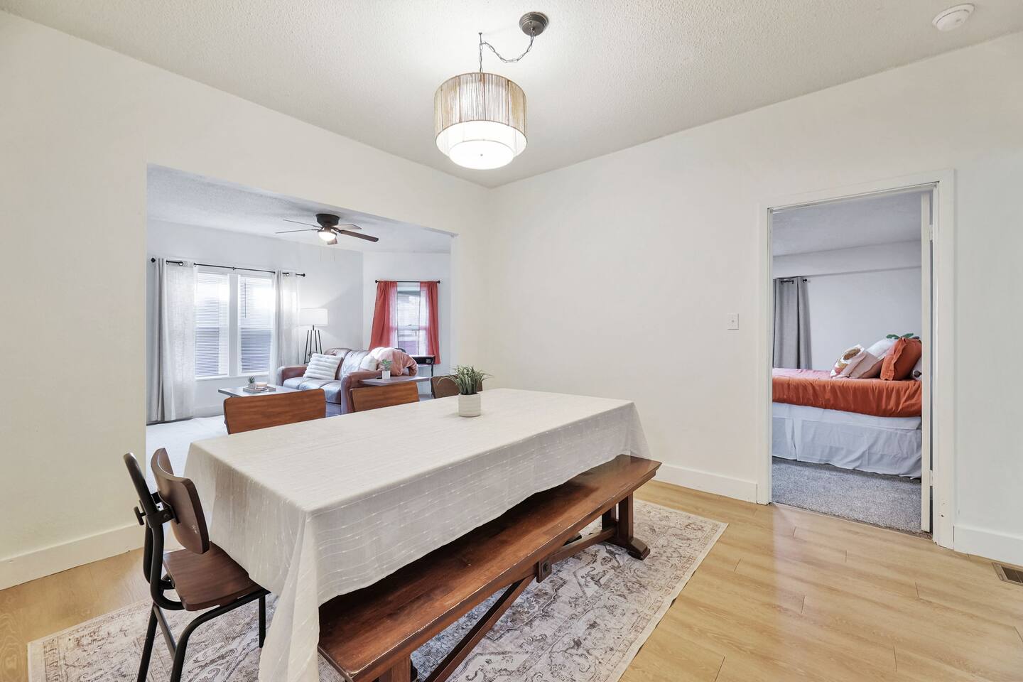 Step inside and discover a space designed with you in mind—whether you're here to unwind, tackle your to-do list, or simply enjoy some well-deserved R&R. Our home is thoughtfully furnished for maximum comfort, function, and maybe even a little flair. Here’s the scoop: 🛏 Two Queen Bedrooms: Snuggle up in beds with highly rated mattresses—because sleep is serious business. 🍳 Fully Equipped Kitchen: Cook like a pro, or at least try to. 🍽 Dining Table for 8: Perfect for big meals, board games, or a dramatic retelling of your day. 🛋 Spacious Living Area: Kick back, relax, and enjoy some serious lounge vibes. Our Favorite Perks- (because we all have favorites, right?): - 🐾 Pet-Friendly: Your furry family members are welcome too! - 🌐 High-Speed WiFi & Smart TV: For streaming, scrolling, and staying connected. - 💻 Dedicated Workspace: Because spreadsheets and coffee go hand in hand. - 🧺 Full-Size Washer & Dryer: No laundry mountain here! - 🌙 Blackout Curtains: Sleep in like the champion you are. Explore the Neighborhood 🗺 Live like a local and dive into some of our favorite spots: - 🌮 iTSCALi Tapas & Tequila: Tacos and tequila—name a better duo. - Prost German Restaurant: Schnitzel, anyone? - 🥐 Noble Nine Bakery: Treat yourself. (You deserve it.) - 📚 Blush Bookstore: Curl up with a book. - 🎶The Loud Cicada: Creativity flows in this adorable gift shop. The Essentials: 🚗 Park in front on the street or in your private space out back. 🐕 The backyard is shared with the neighboring unit, but there’s plenty of space for your pups to play! And one last thing—this home is a duplex, with the other side also hosting extended-stay travelers. We can’t wait to welcome you! 🏡